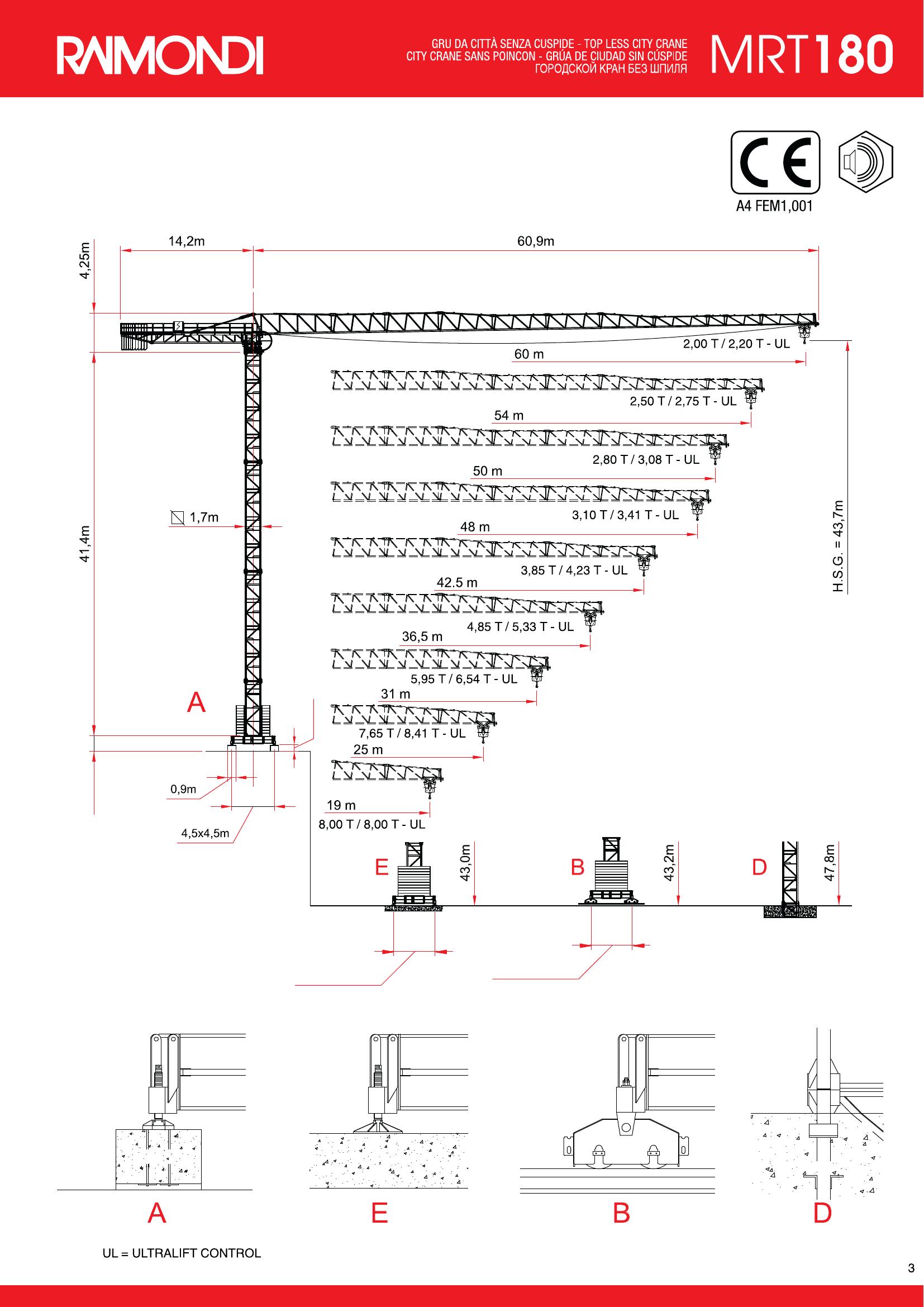 Raimondi MRT 180 — итальянский безоголовочный (top less) башенный кран. Компактная конструкция идеально подходит для стеснённых городских площадок. Максимальная грузоподъёмность 8 тонн при вылете до 19 м, на конце стрелы (42 м) — 3,85 т. Кран оснащён системой ULTRALIFT для увеличения грузоподъёмности на 10%.